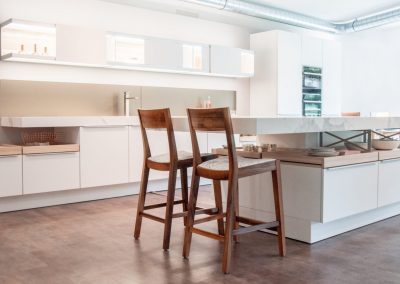 Les portillons sur les meubles de cuisine seront également traités en verre si l’on désire trouver une touche transparente ou translucide sur certains éléments.